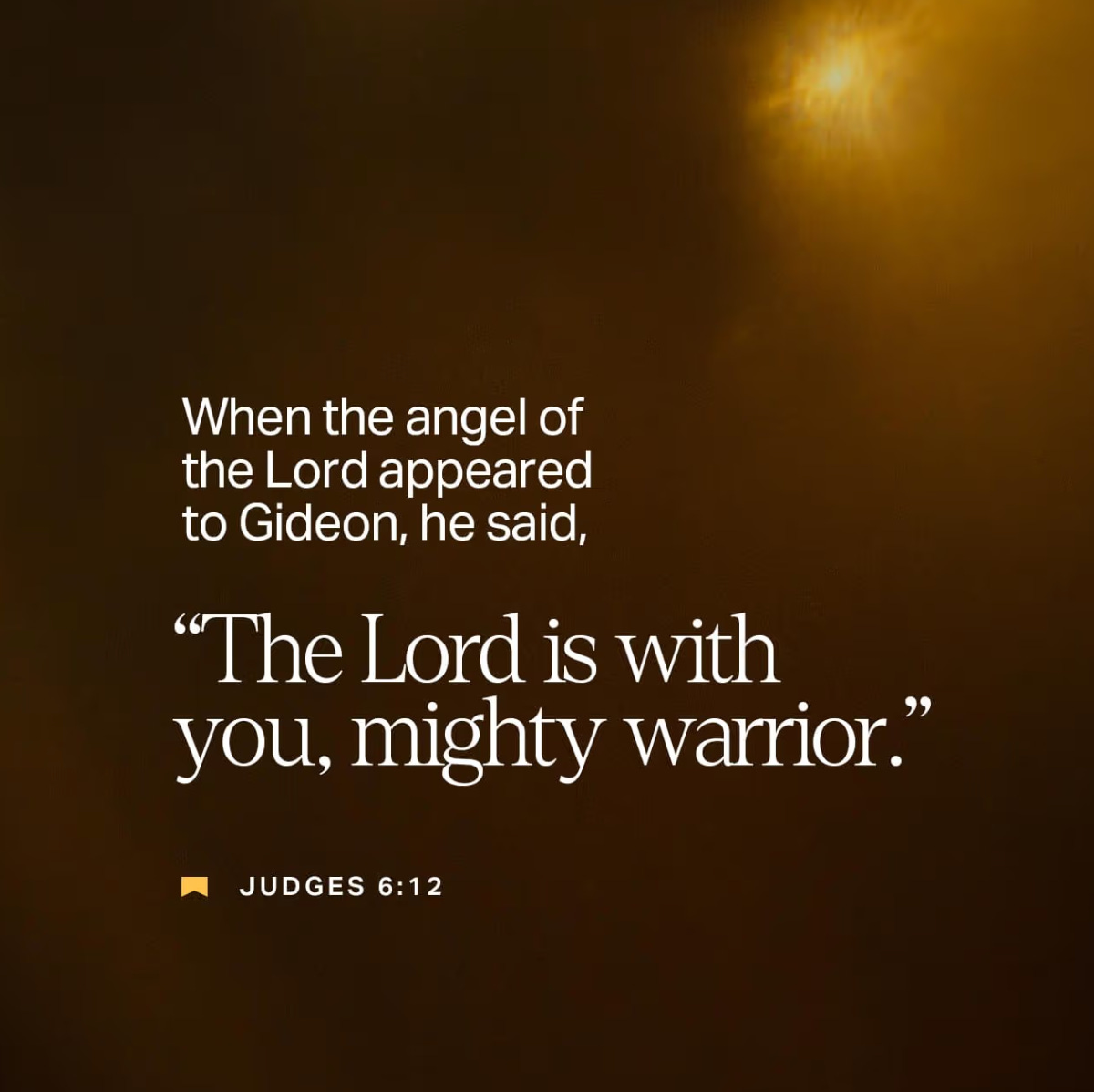 When the angel of the LORD appeared to Gideon, he said, “The LORD is with you, mighty warrior.” - Judges 6:12 NIV