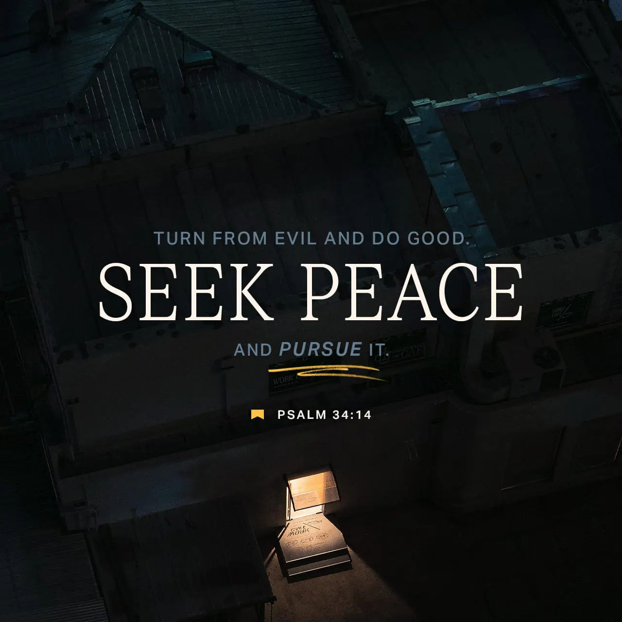 "Turn from evil and do good. Seek peace and pursue it." — Psalm 34:14 (NIV)