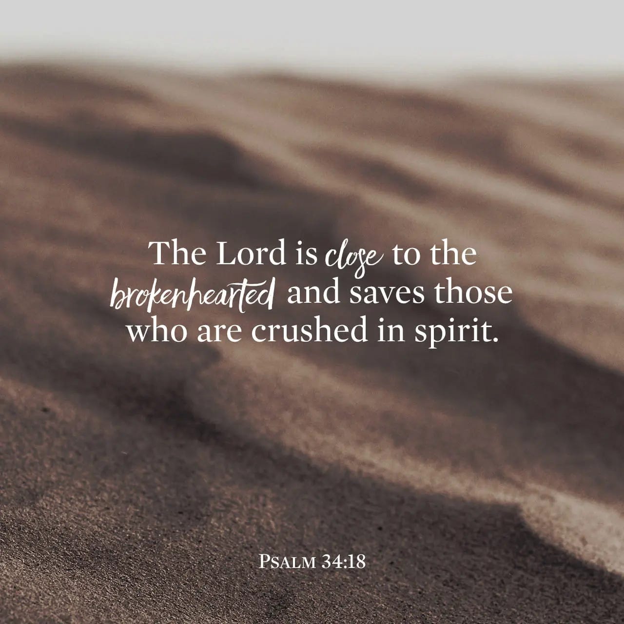 The Lord is close to the brokenhearted and saves those who are crushed in spirit. - Psalms 34:18 NIV