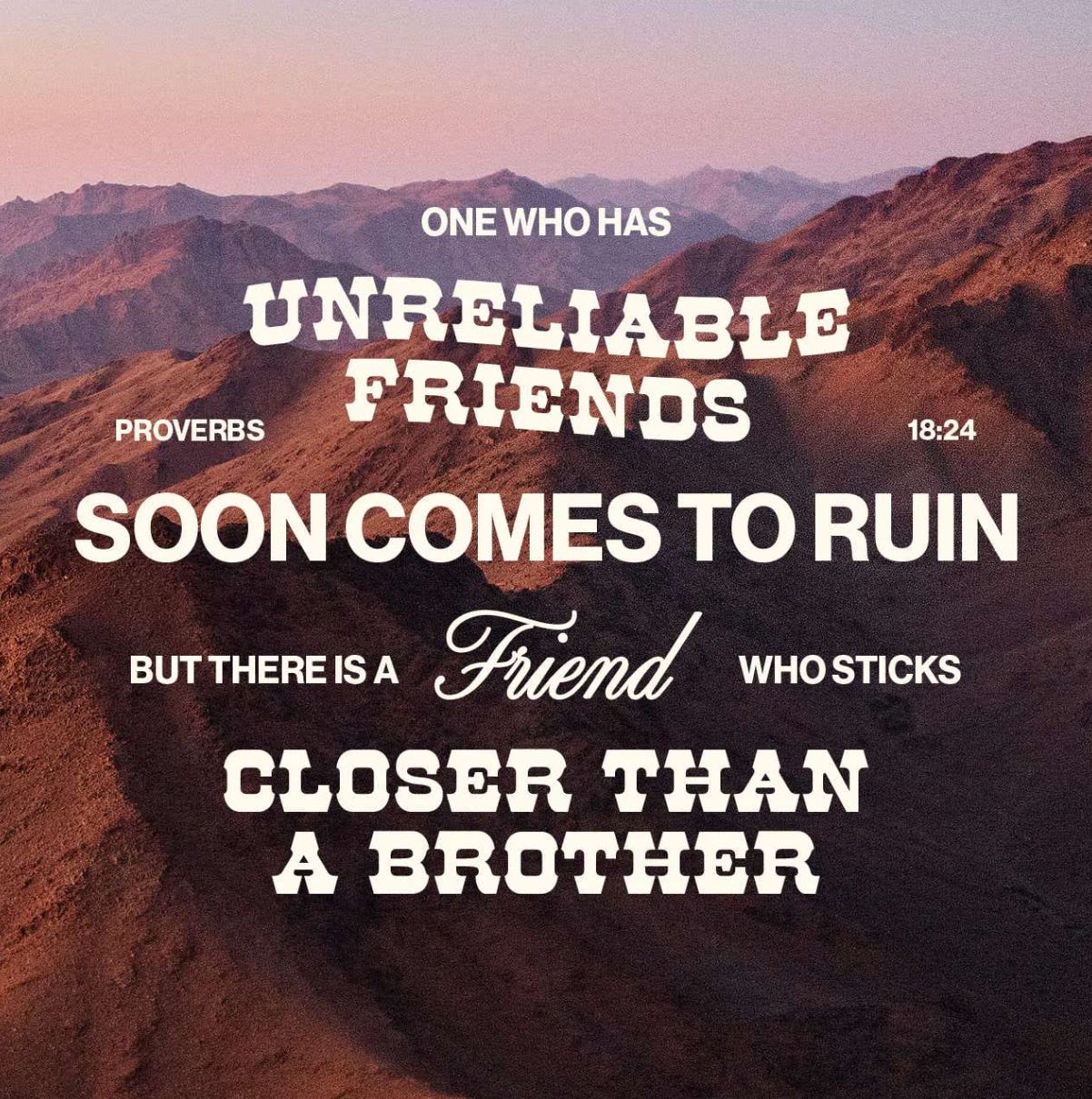 One who has unreliable friends soon comes to ruin, but there is a friend who sticks closer than a brother. - Proverbs 18:24 NIV