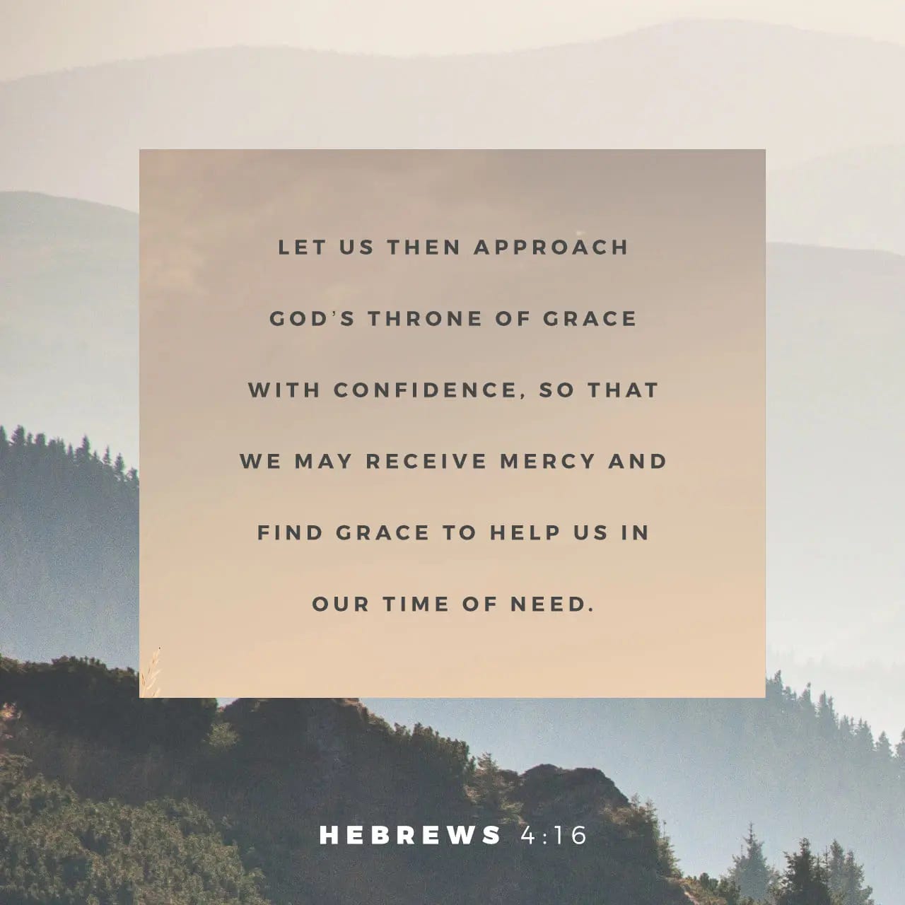"Let us then approach God's throne of grace with confidence, so that we may receive mercy and find grace to help us in our time of need." — Hebrews 4:16, NIV