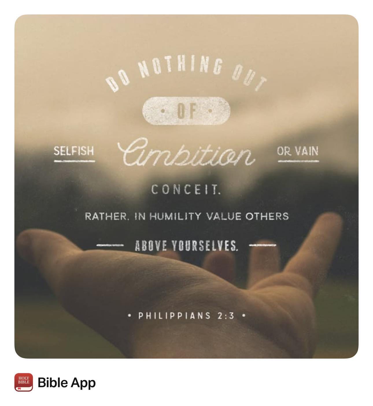 Today’s scripture calls us to a posture of humility and selflessness. Philippians 2:3 reminds us that striving for recognition or seeking to exalt ourselves through "vainglory" leads only to emptiness. Instead, God’s Word calls us to esteem others above ourselves, prioritizing their needs and lifting them up with genuine love.