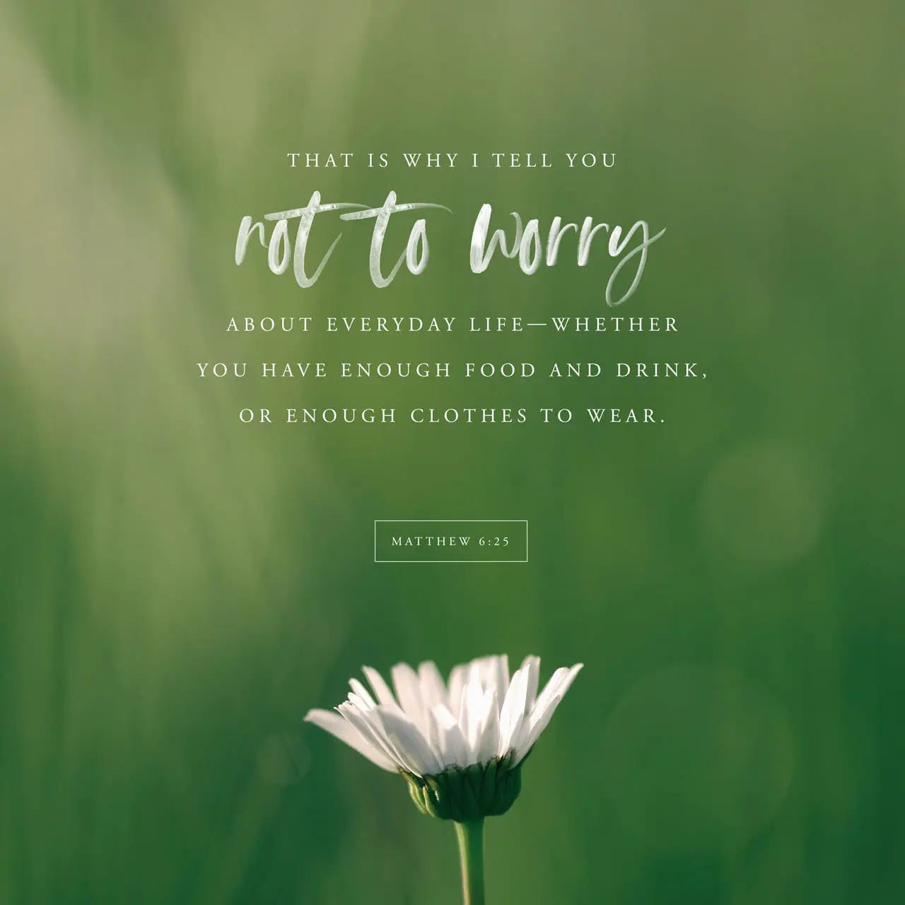 “Therefore I tell you, do not worry about your life, what you will eat or drink; or about your body, what you will wear. Is not life more than food, and the body more than clothes? - Matthew 6:25 NIV