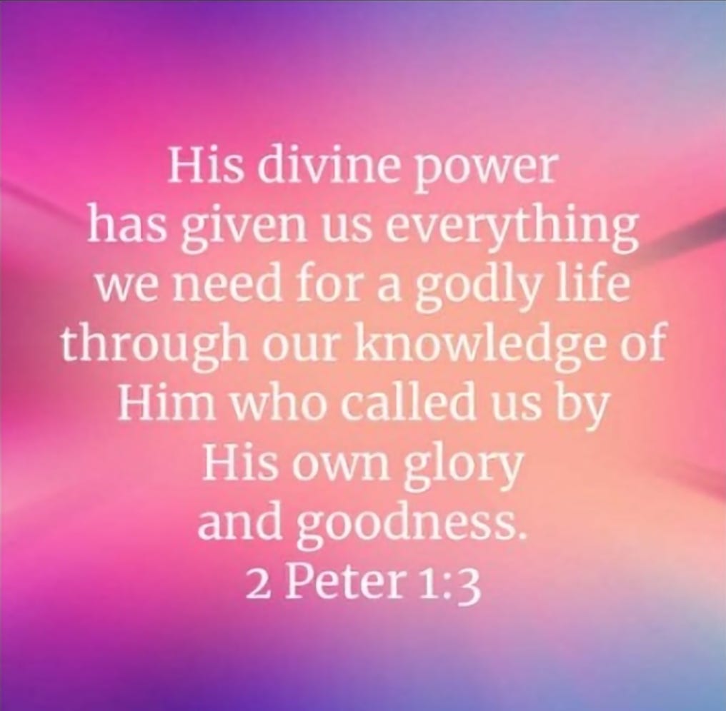 His divine power has given us everything we need for a godly life through our knowledge of him who called us by his own glory and goodness. - 2 Peter 1:3 NIV