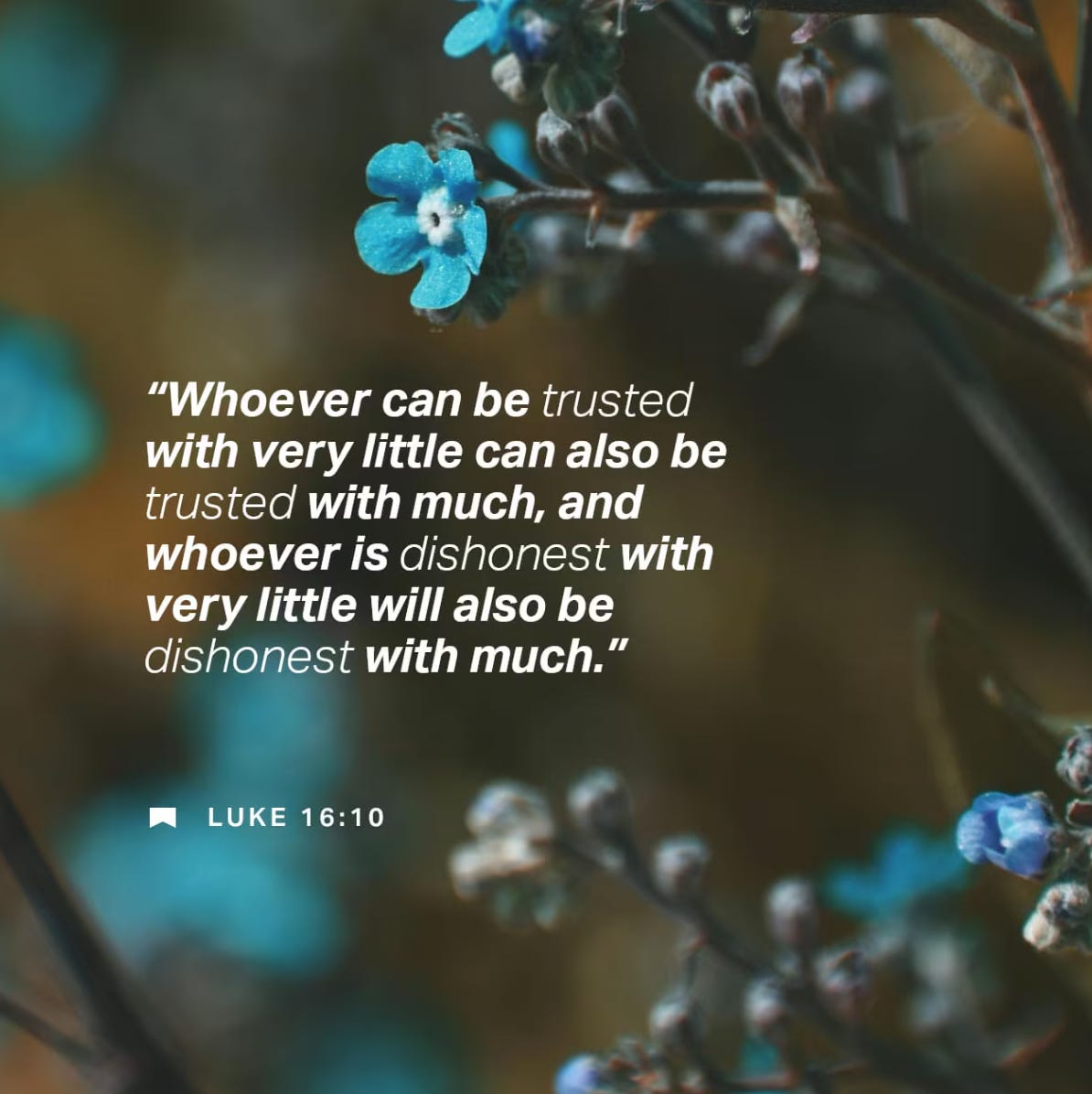 Whoever can be trusted with very little can also be trusted with much, and whoever is dishonest with very little will also be dishonest with much. - Luke 16:10 NIV