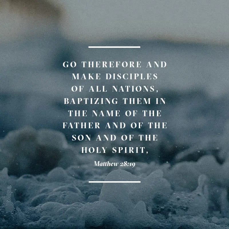 "Therefore go and make disciples of all nations, baptizing them in the name of the Father and of the Son and of the Holy Spirit."