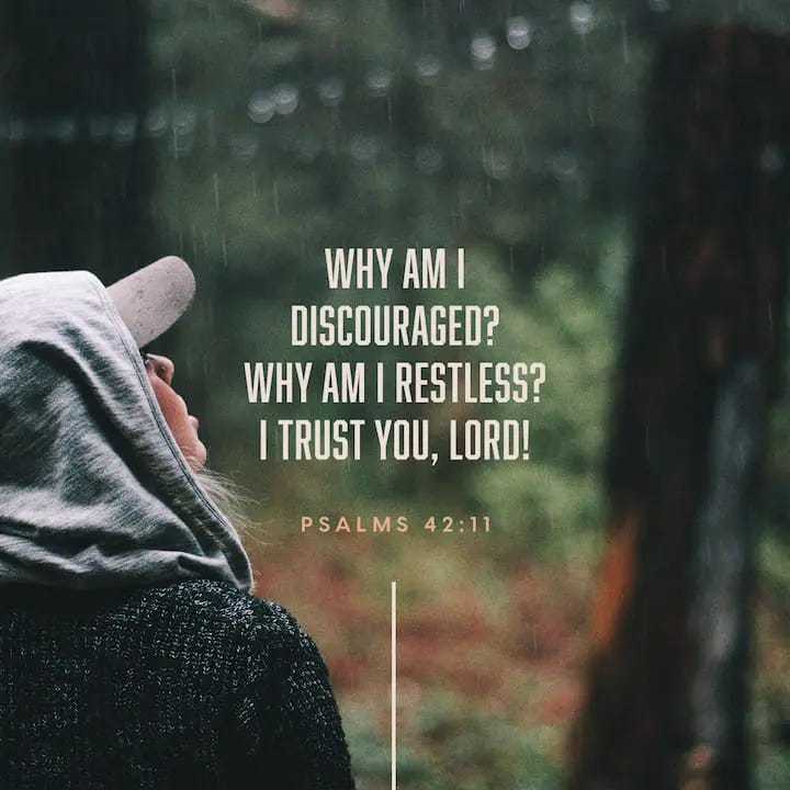 Why, my soul, are you downcast? Why so disturbed within me? Put your hope in God, for I will yet praise him, my Savior and my God. - Psalm 42:11 NIV