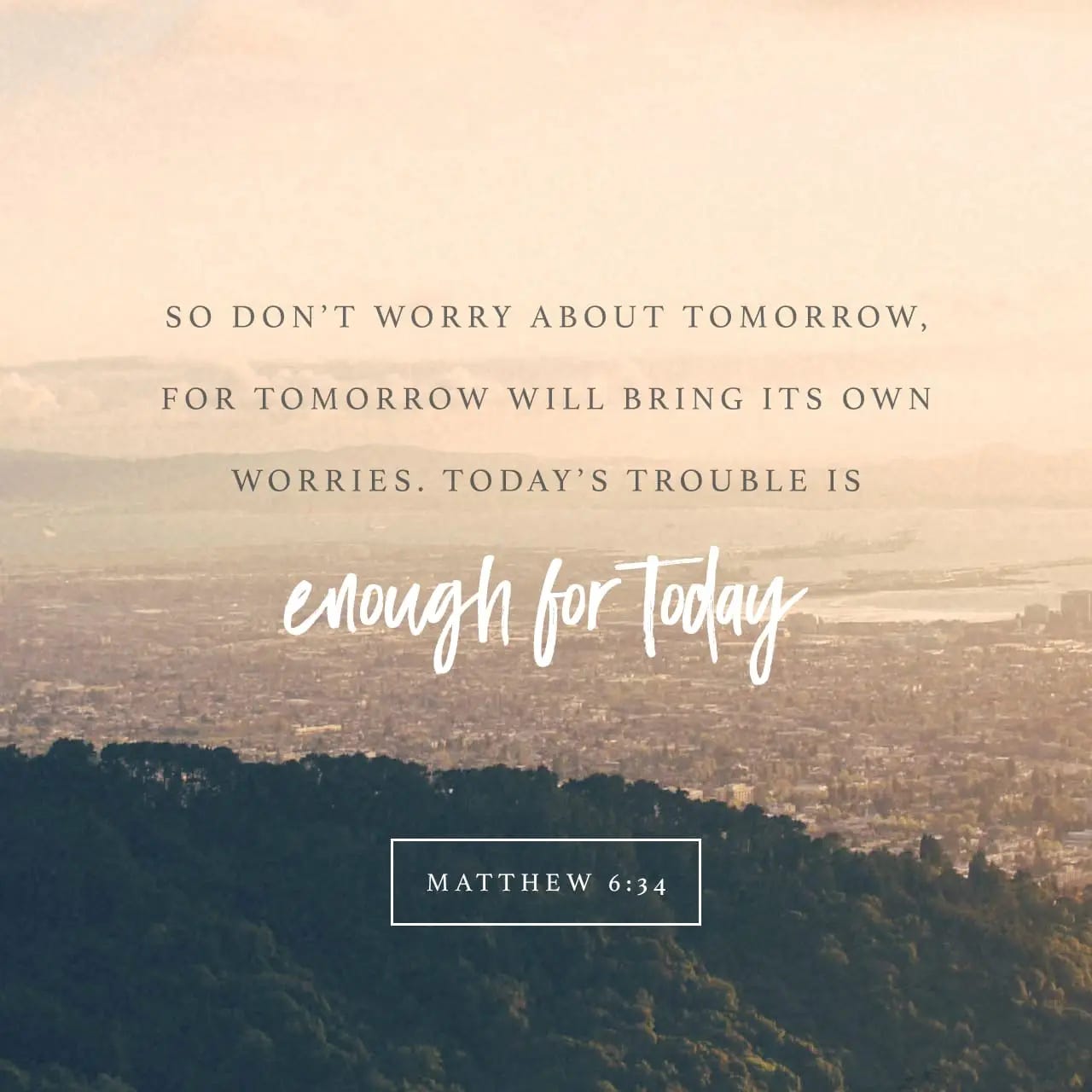 “Therefore do not worry about tomorrow, for tomorrow will worry about itself. Each day has enough trouble of its own.” - Matthew 6:34 (NIV)