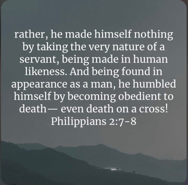 "Rather, he made himself nothing by taking the very nature of a servant, being made in human likeness. And being found in appearance as a man, he humbled himself by becoming obedient to death—even death on a cross!" — Philippians 2:7-8 (NIV)