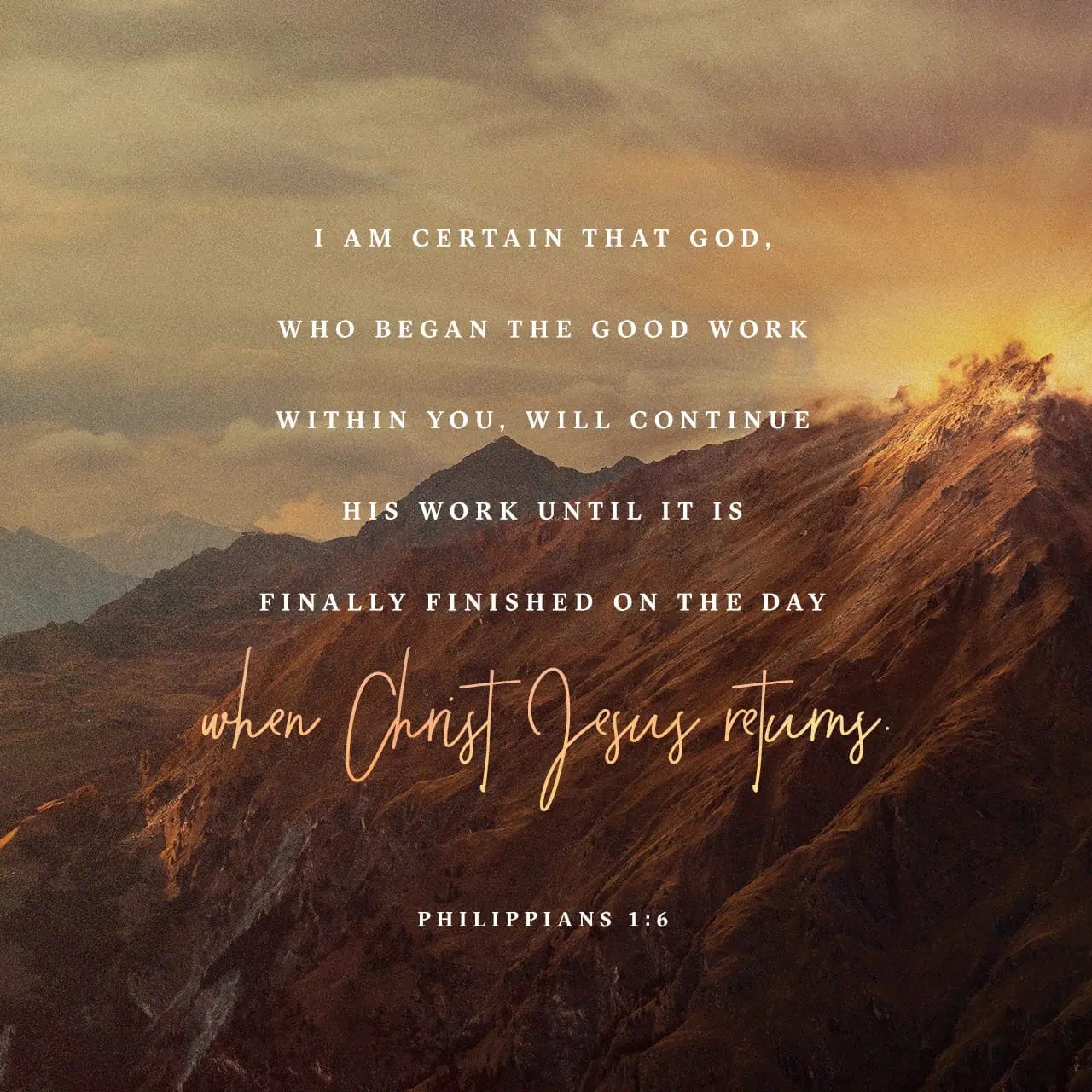 “Being confident of this, that he who began a good work in you will carry it on to completion until the day of Christ Jesus.” – Philippians 1:6 NIV