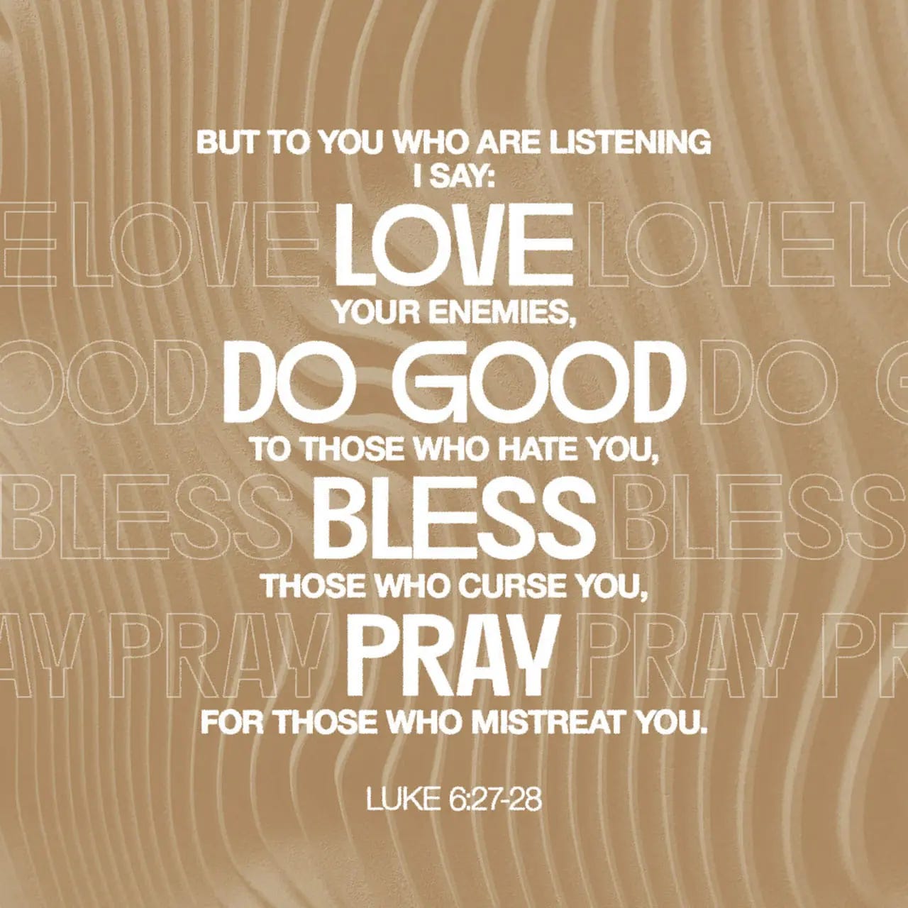 "But to you who are listening I say: Love your enemies, do good to those who hate you, bless those who curse you, pray for those who mistreat you."