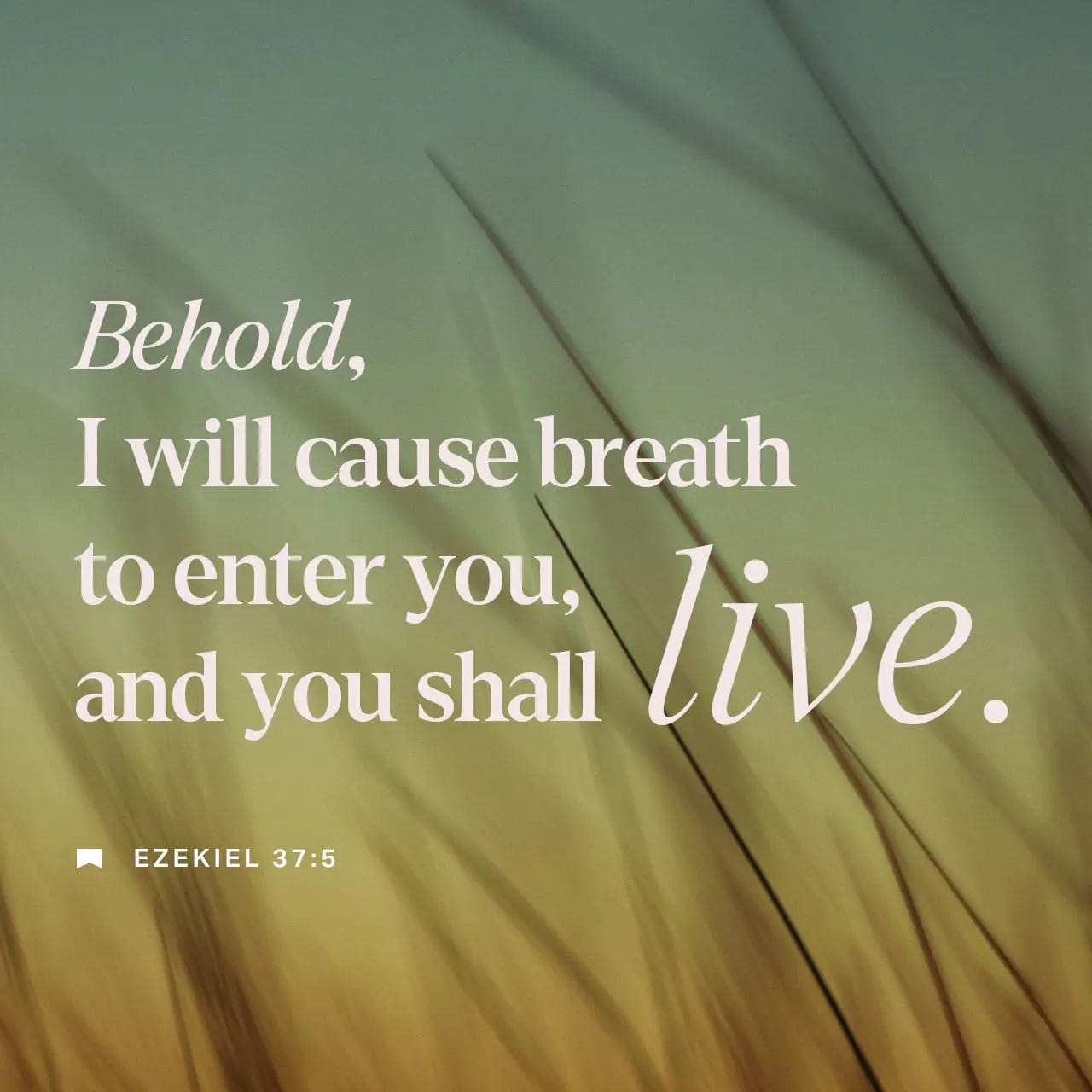 This is what the Sovereign LORD says to these bones I will make breath enter you and you will come to life. I will attach tendons to you and make flesh come upon you and cover you with skin I will put breath in you and you will come to life. Then you will know that I am the LORD. - Ezekiel 37:5-6 NIV