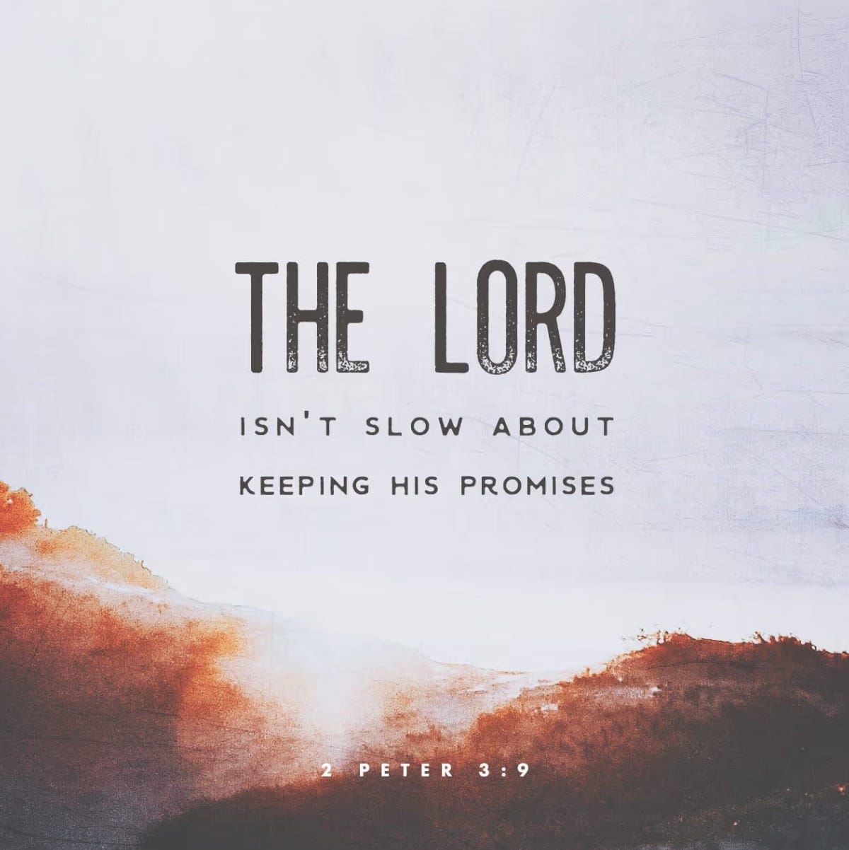 The Lord is not slow in keeping his promise, as some understand slowness. Instead he is patient with you, not wanting anyone to perish, but everyone to come to repentance. - 2 Peter 3:9 NIV