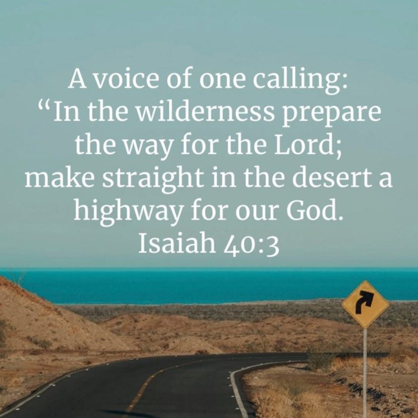 "A voice of one calling: ‘In the wilderness prepare the way for the Lord; make straight in the desert a highway for our God.’" — Isaiah 40:3 (NIV)