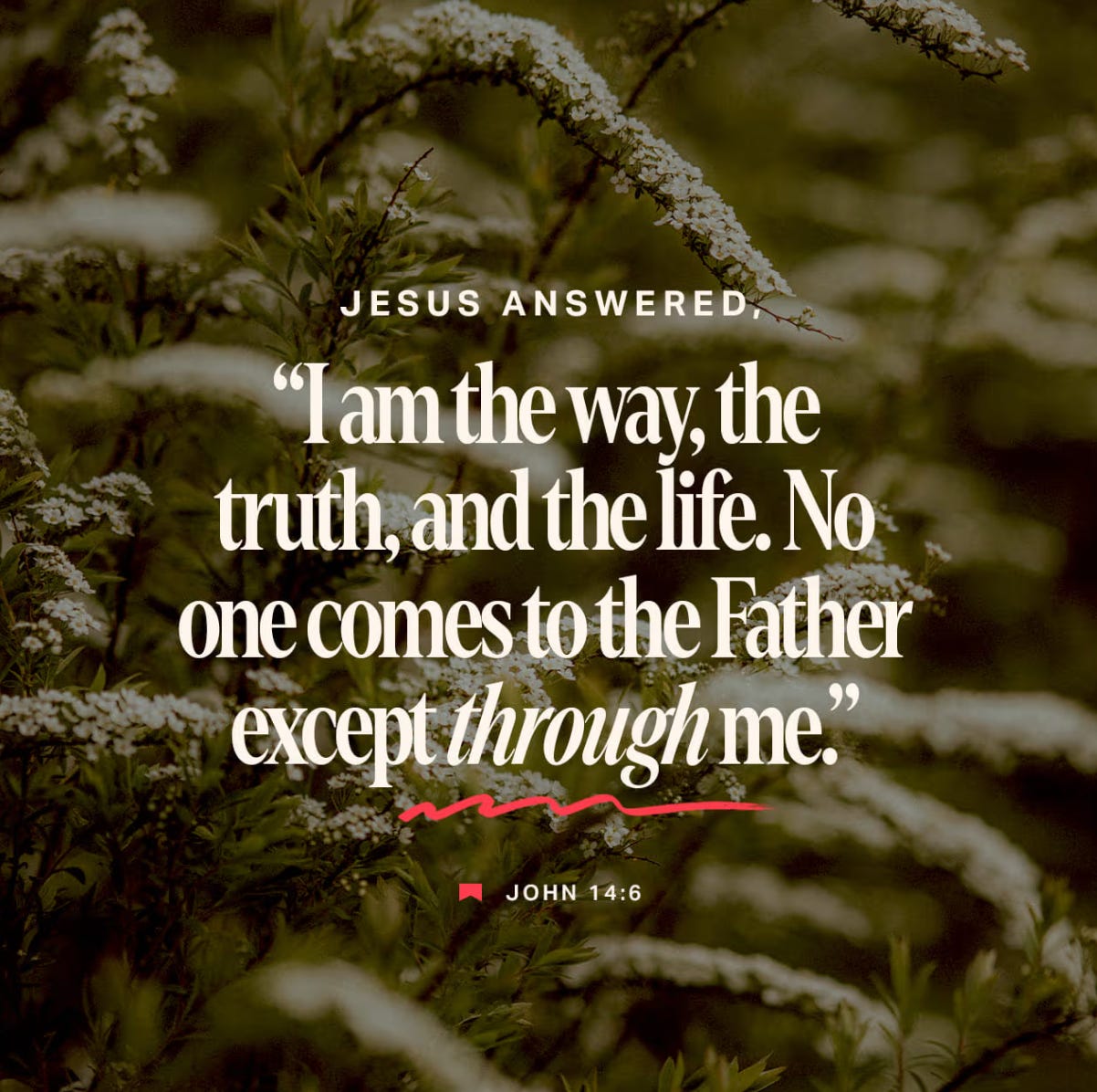 Jesus answered, “I am the way and the truth and the life. No one comes to the Father except through me.” - John 14:6 NIV