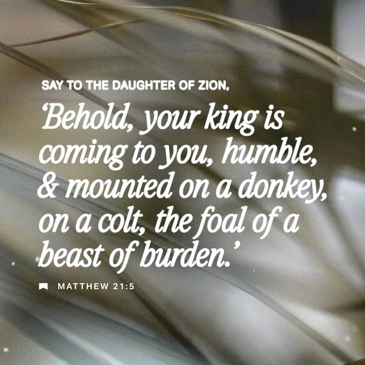“Say to Daughter Zion, ‘See, your king comes to you, gentle and riding on a donkey, and on a colt, the foal of a donkey.’ ” - Matthew 21:5 NIV