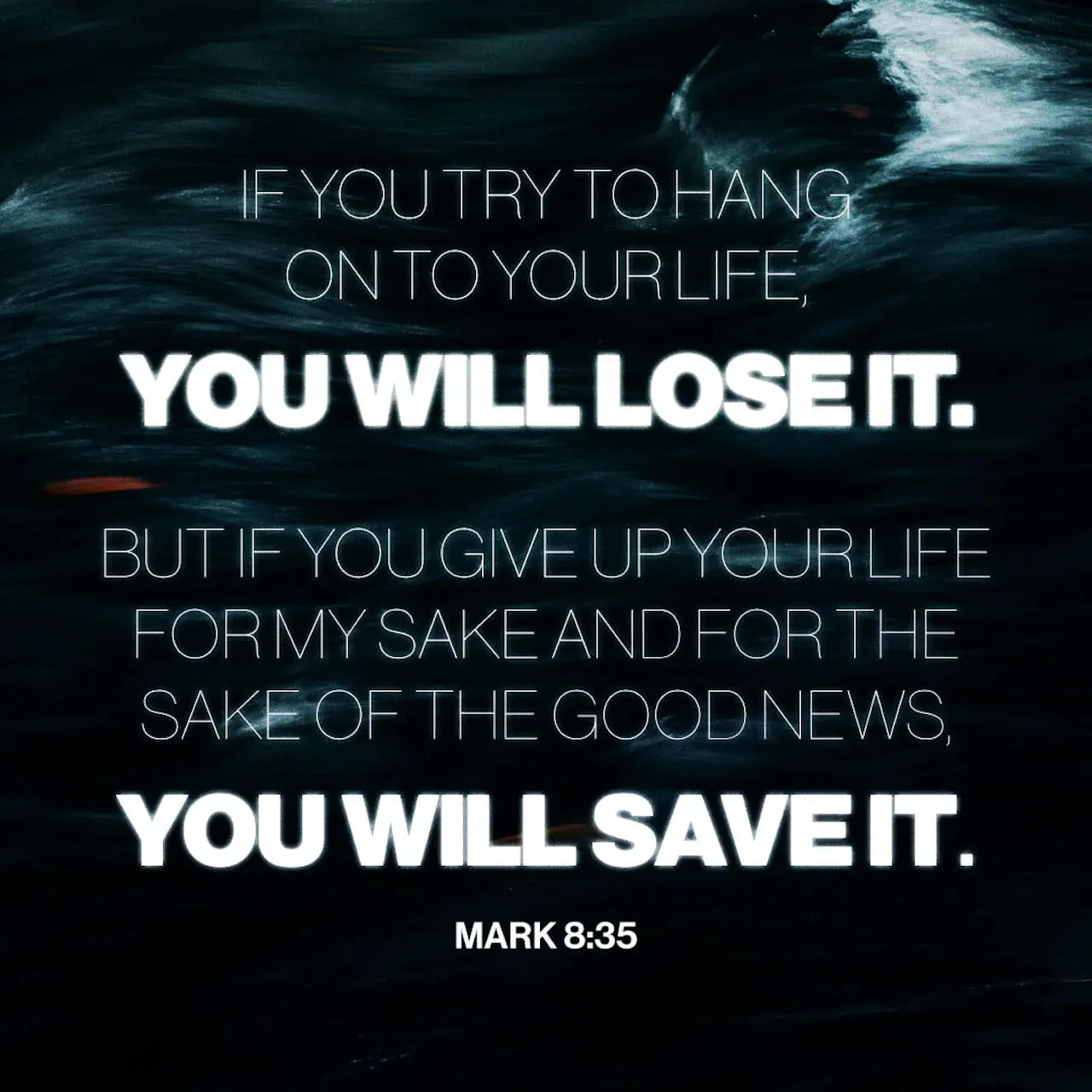Jesus knew this when He spoke the words in Mark 8:35. To follow Him is not merely to believe in Him—it is to give Him our whole life, trusting that whatever we lose for His sake will be restored in ways far greater than we can imagine.